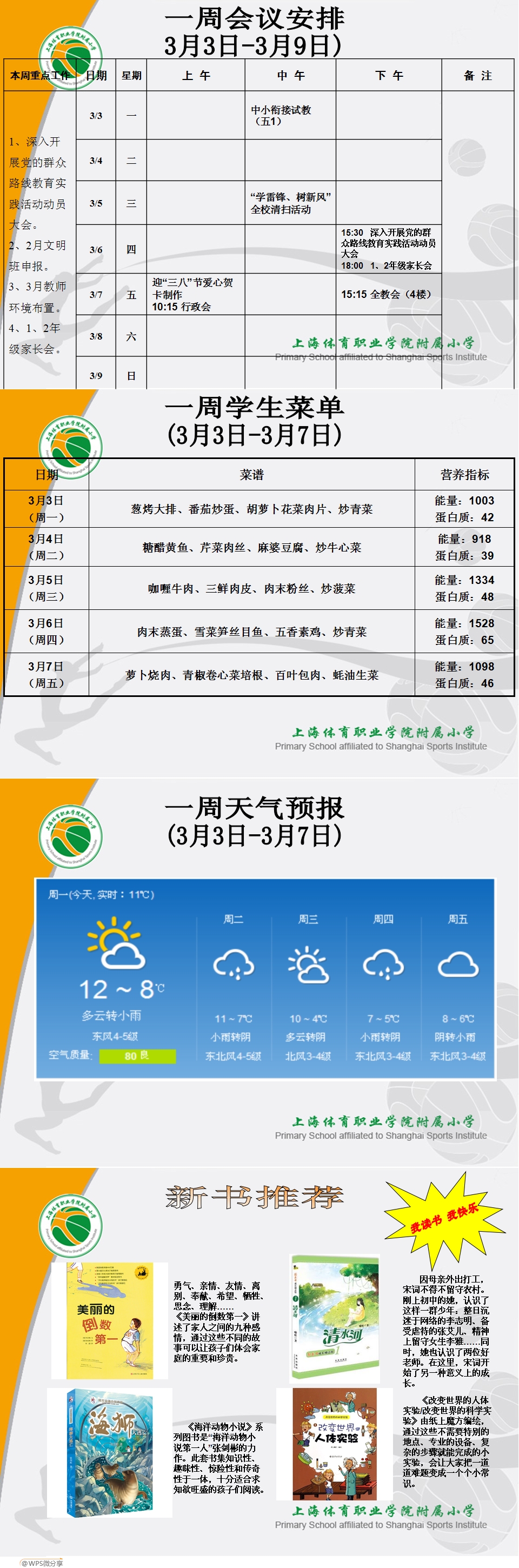 一周会议安排及学生菜单、课程表公告、作业公示、晒课后服务课表