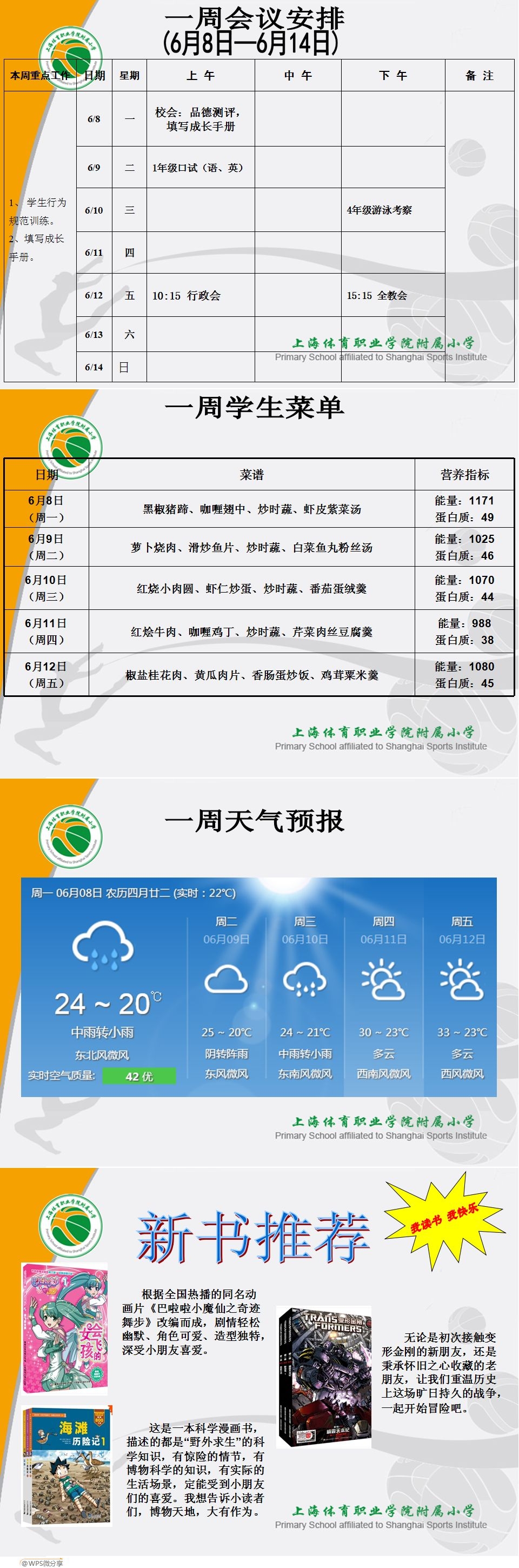一周会议安排及学生菜单、课程表公告、作业公示、晒课后服务课表