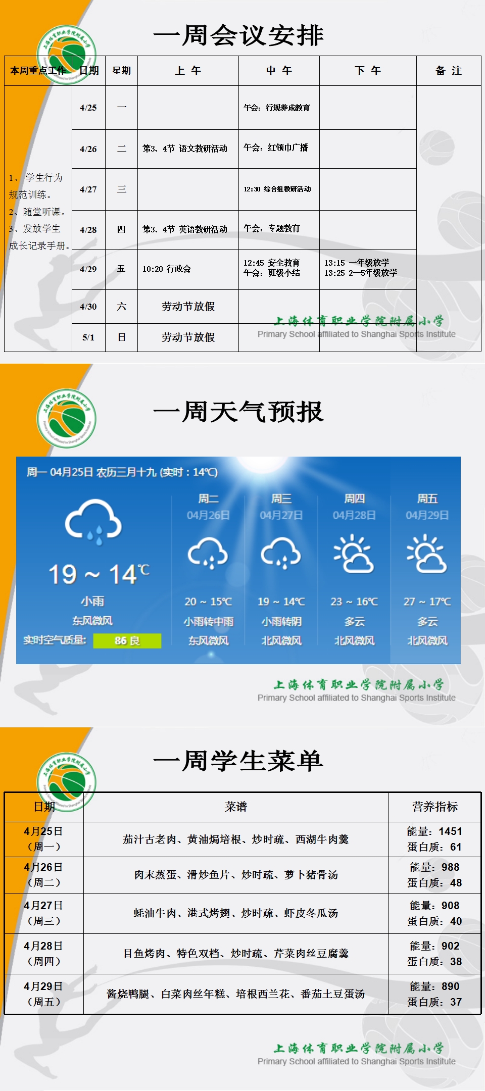 一周会议安排及学生菜单、课程表公告、作业公示、晒课后服务课表