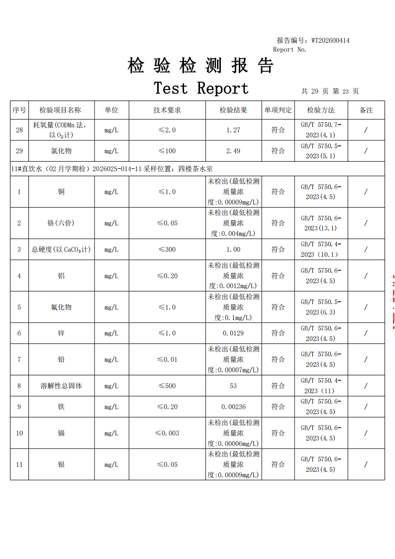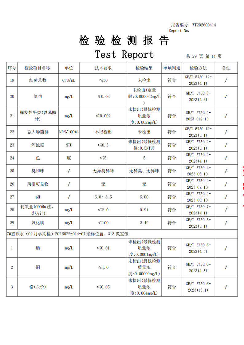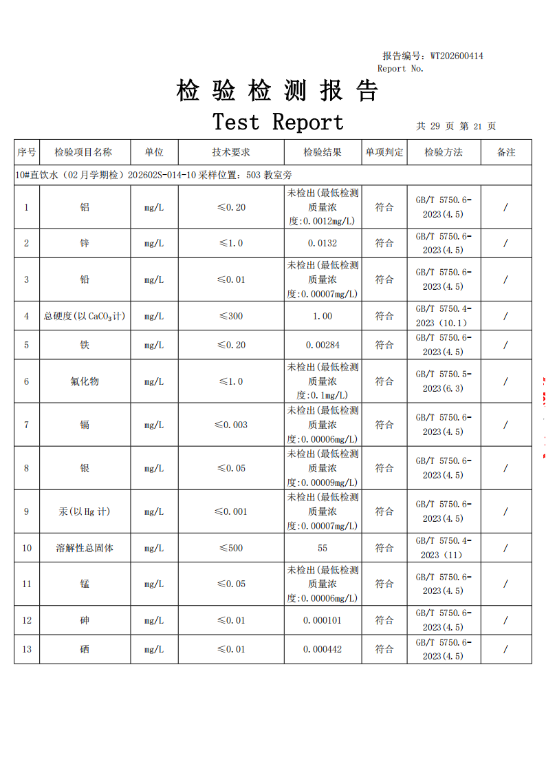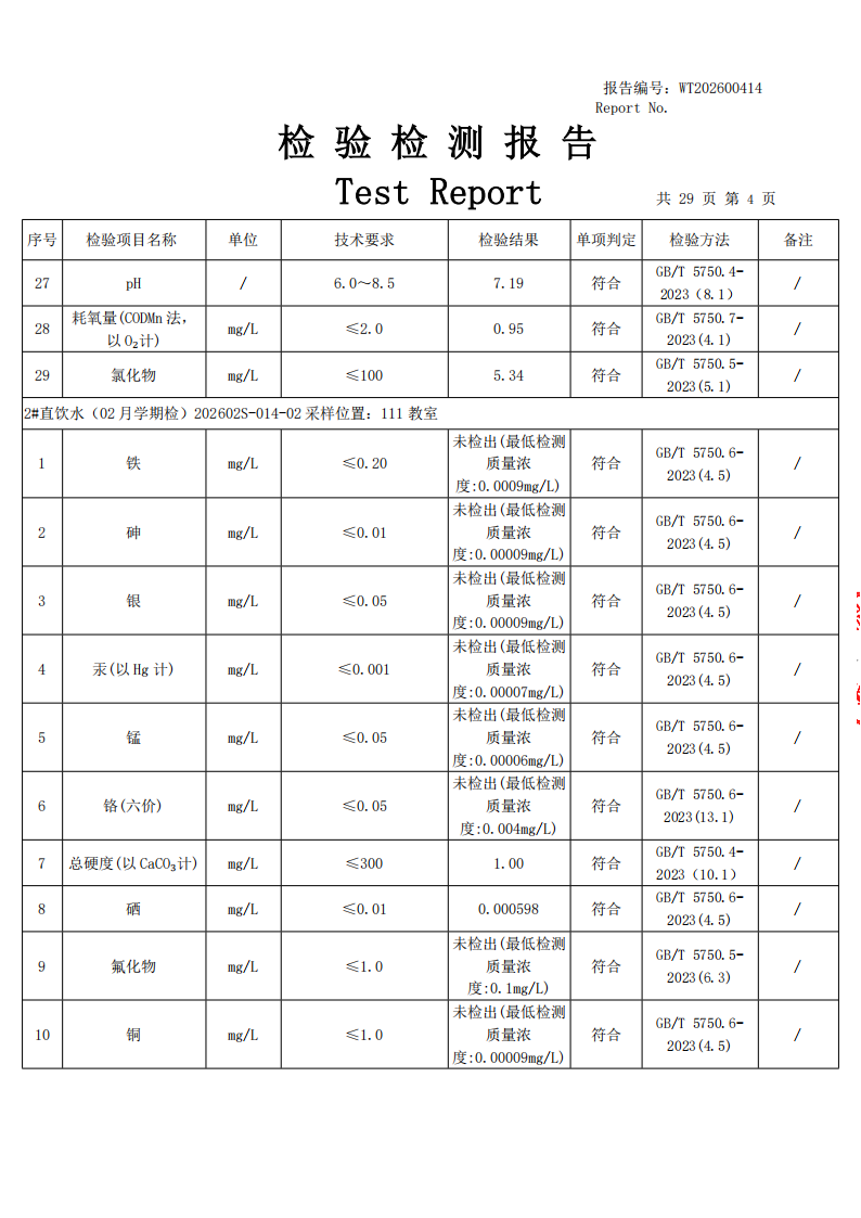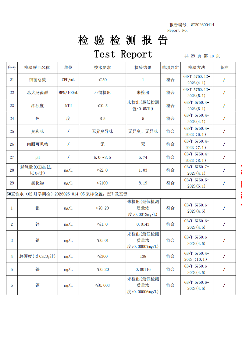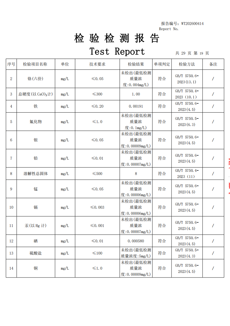 直饮水检测公示