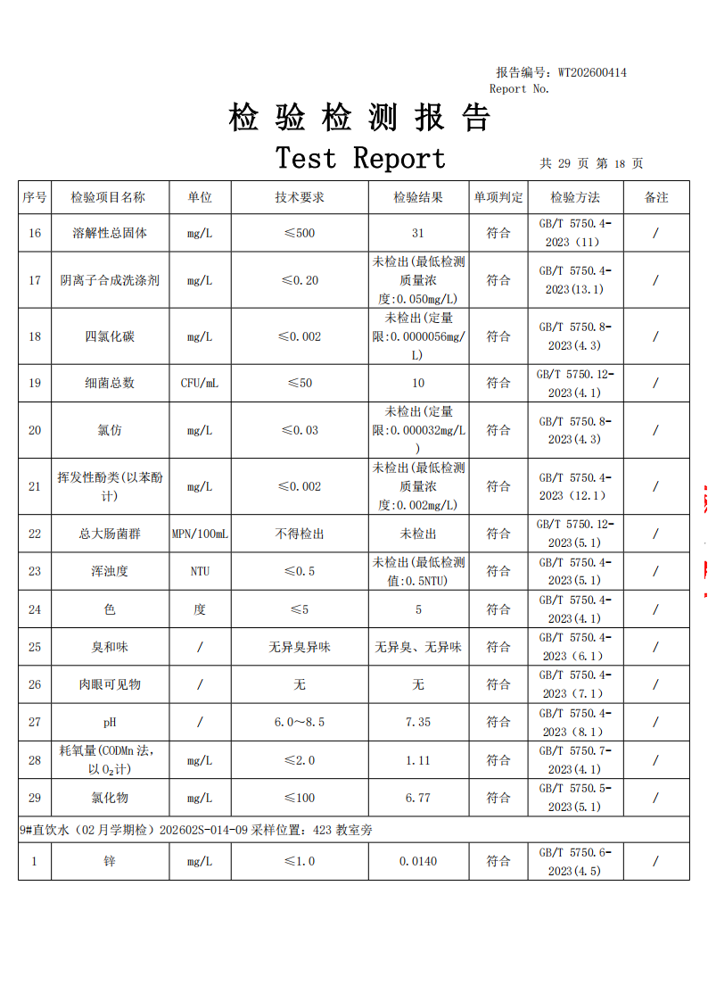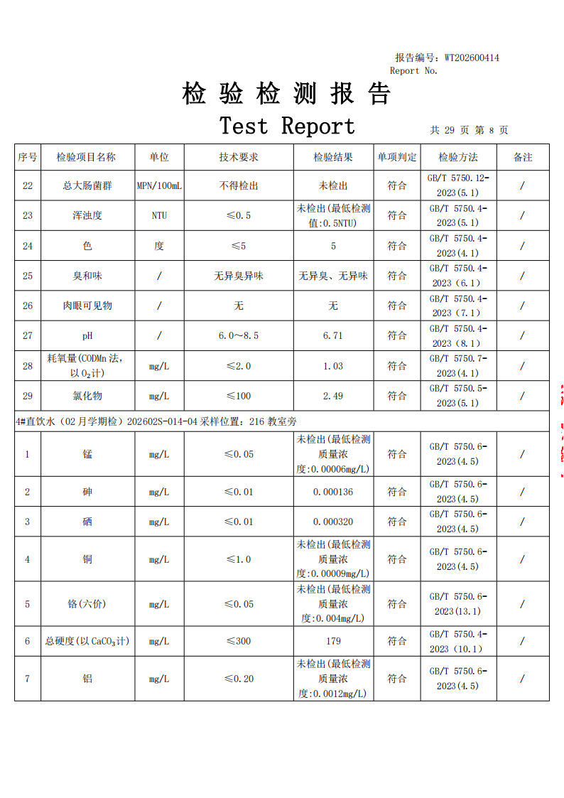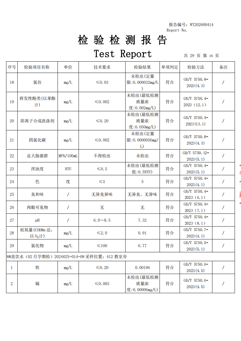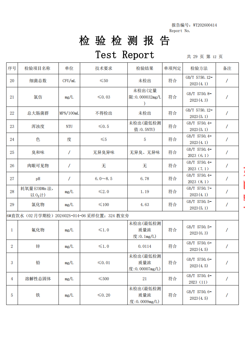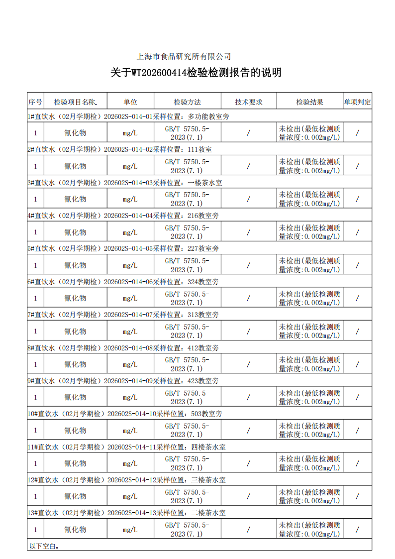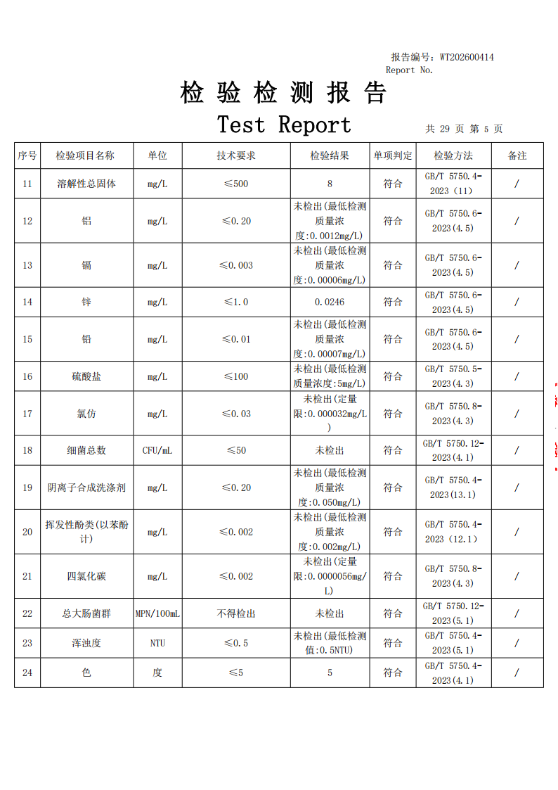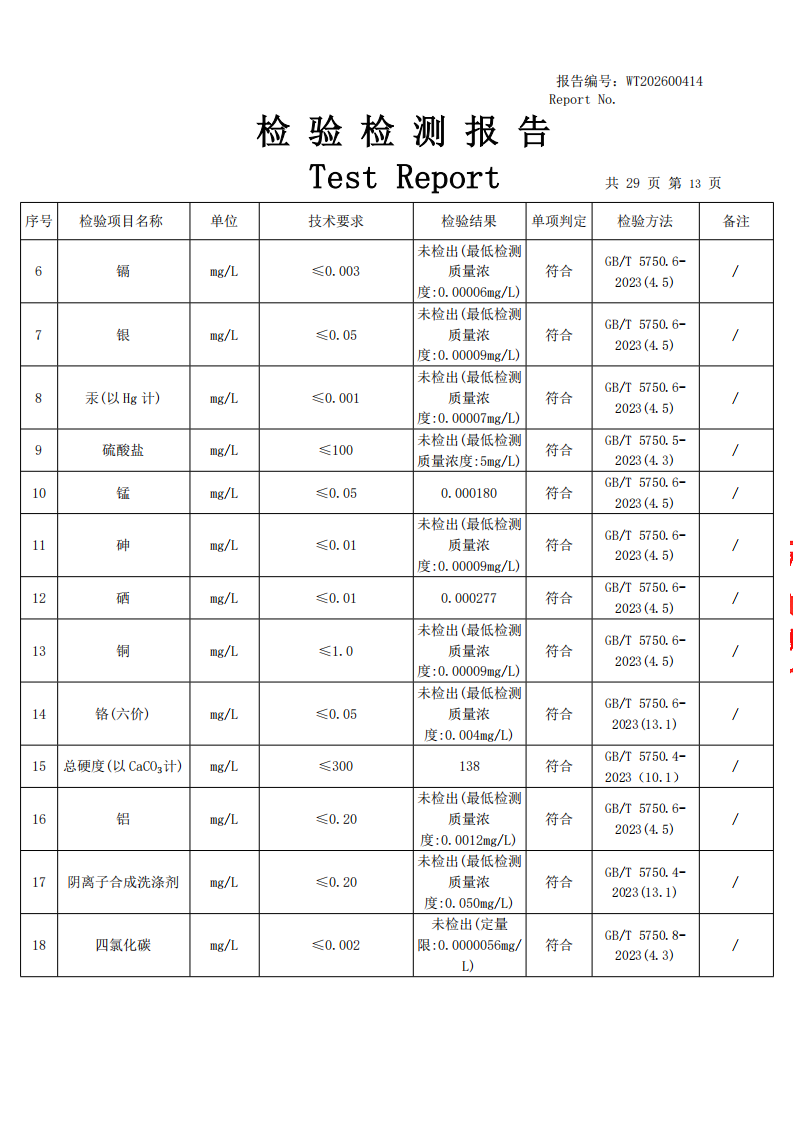 直饮水检测公示
